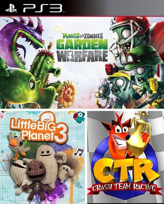 3 juegos en 1 Plants vs Zombies Garden Warfare Mas LittleBigPlanet 3 Mas CTR Crash Team Racing