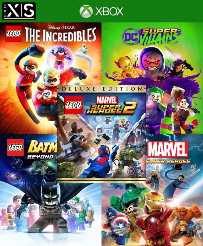 5 juegos en 1 LEGO THE INCREDIBLES + LEGO DC SUPER VILLAINS EDICIÓN DELUXE + LEGO BATMAN 3 BEYOND GOTHAM + LEGO MARVEL SUPER HEROES + LEGO MARVEL SUPER HEROES 2 EDICIÓN DELUXE - XBOX SERIES X/S